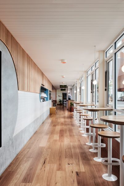 毗鄰酒店的是公共酒吧和小酒館,對(duì)客人和公共食客開放。小酒館提供了一種平靜而充滿活力的舒適感,軟墊隔間與 RC+D 定制的格子呢地毯相得益彰,并輔以裝飾酒吧的黑色對(duì)接地板和水磨石板。在整個(gè)小酒館空間中,當(dāng)?shù)厮囆g(shù)家 通過她的畫作、壁紙和藝術(shù)品帶來了色彩和個(gè)性的爆發(fā),所有這些都彰顯了的世紀(jì)中葉風(fēng)格。