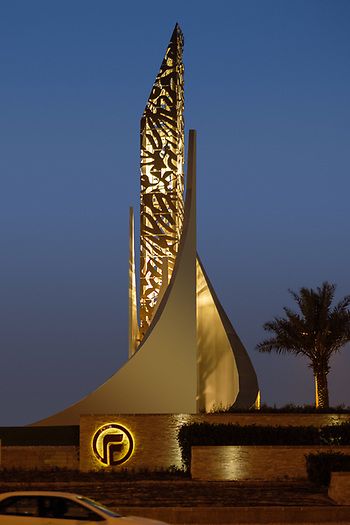 大型精神保壘發(fā)江標識與藝術品的結合設計。